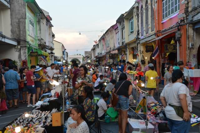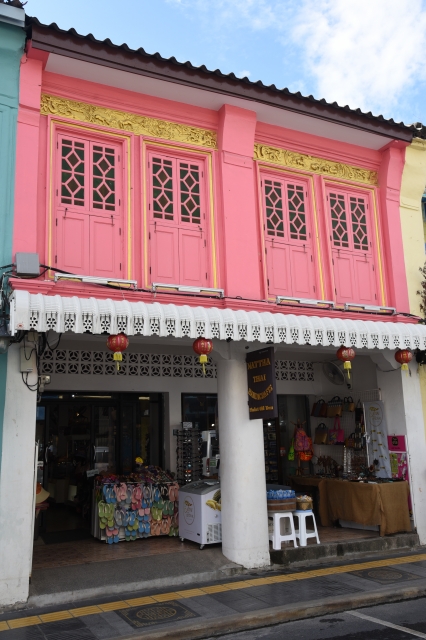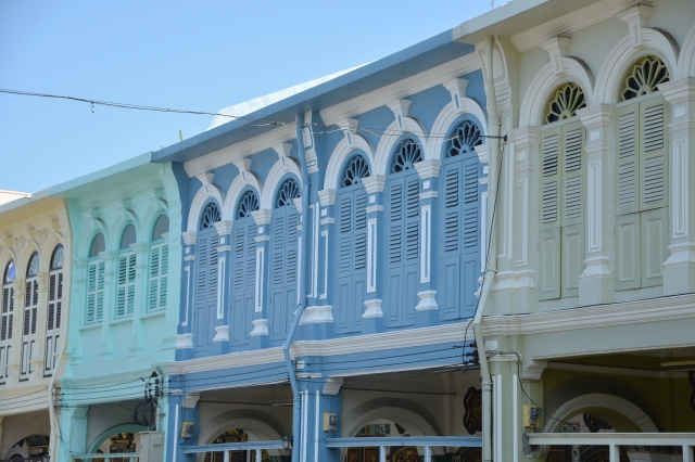 買い物が終わったら、のんびり散策をしましょう! プーケット・タウンの中心部は、オールド・タウンと呼ばれるエリア。このエリアはかつて錫の貿易で栄えた歴史をもち、当時の栄華を物語る洗練された建物が立ち並びます。カラフルなペイントと窓が特徴のシノポルトギース様式(中国とポルトガルの影響を受けた建築様式のこと)の建物を利用した古民家カフェやショップが数多くあり、ウインドーショッピングをしたり、お茶をするのも楽しみのひとつです。