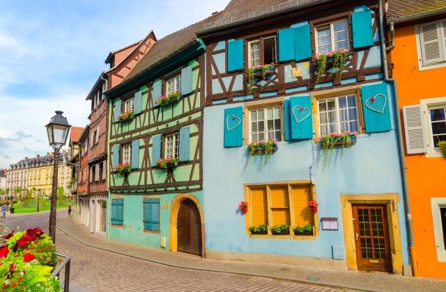 バルコニーを花で彩ったカラフルな家々、お店の軒先を飾るかわいい吊り看板など、どこをとってもまさに映画のようなファンタジーさが漂うコルマール。花々が美しいさわやかな初夏はもちろん、イルミネーションが輝くクリスマスマーケットの季節もおすすめです。