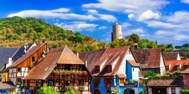 ストラスブールとコルマールを楽しんだら、小さなかわいい村々へも足を延ばしてみてください。アルザス地方は白ワインを中心としたワインの名産地でもあります。アルザスワインの代表選手は、リースリングやミュスカ、ゲヴュルツトラミネールなど。華やかな香りとすっきりとした飲み口で、初心者にもおすすめです。ブドウ畑の合間に点在するワイン造りの村々をつないだルートは「アルザスワイン街道」と呼ばれ、その村々を訪ねる旅が人気を集めています。