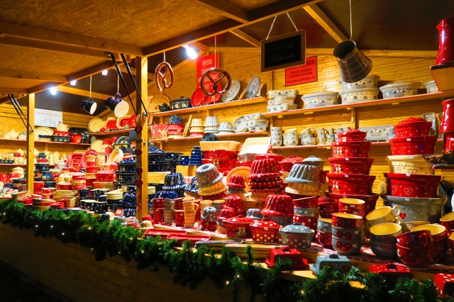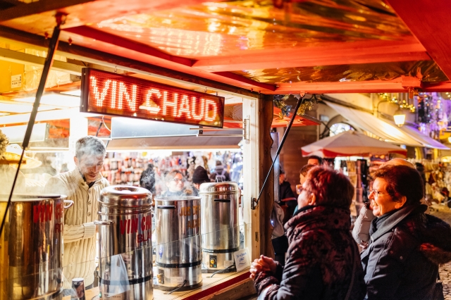 クリスマスマーケットが盛り上がりを見せるのは、日が暮れてイルミネーションが輝きはじめる夕方以降。町によって異なりますが、ストラスブールなどは複数の場所でマーケットが開かれ、場所ごとにイルミネーションの装飾も異なるので、町中いろいろ回ってみたいもの。ただし石畳の町は足元から冷えるので、防寒対策は忘れずに!