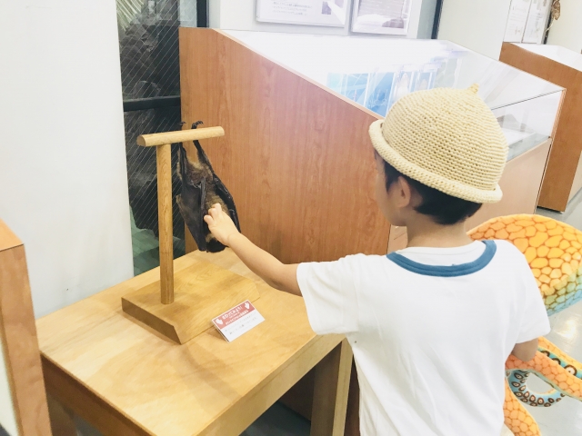 (写真は琉球大学 風樹館の「触れるオオコウモリ」)