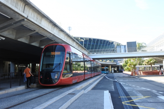 鉄道の場合、パリ・リヨン駅から高速列車TGVで約5時間50分。ニース・ヴィル(Nice Ville)駅下車。空港から市内へは、トラム2号線で約25分。ジャン・メドサン(Jean Médecin)下車。現在延長工事が行われており、12月半ばには港までトラムの路線が延びます。