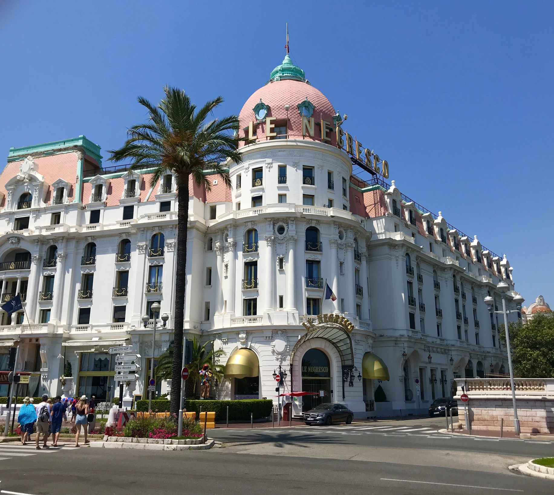 ゆるやかな曲線を描くニースのビーチは、「天使の湾」と称され、古くから愛されてきました。海岸通りには1913年創業の「ネグレスコ」をはじめとする高級ホテルが建ち並び、ニースで最も高級感のあふれるエリアです。