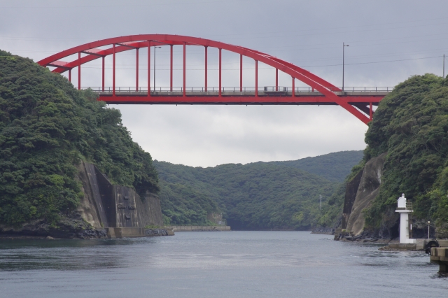 対馬の中央に広がる浅茅湾は、複雑な入江と数多くの島々と半島が織りなす典型的なリアス式海岸です。シーカヤックや観光船でのクルージングが楽しめます。また、烏帽子岳展望台や万関橋などが景勝地として有名です。