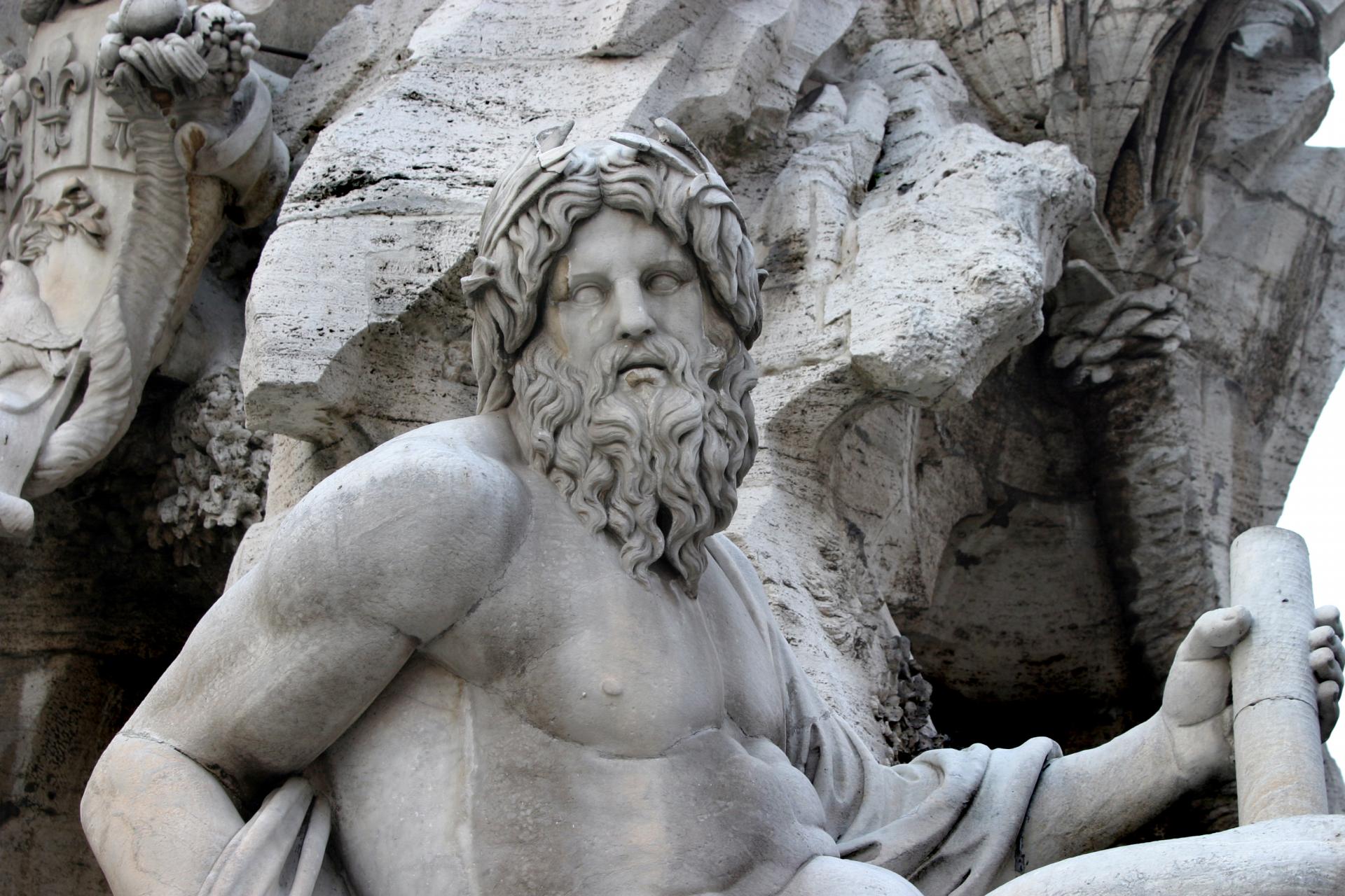 顔を隠しているアフリカ大陸代表のナイル川の寓意像。彫像の作成当時、ナイル川の水源が明確ではなかったため、顔を隠しているといわれています。