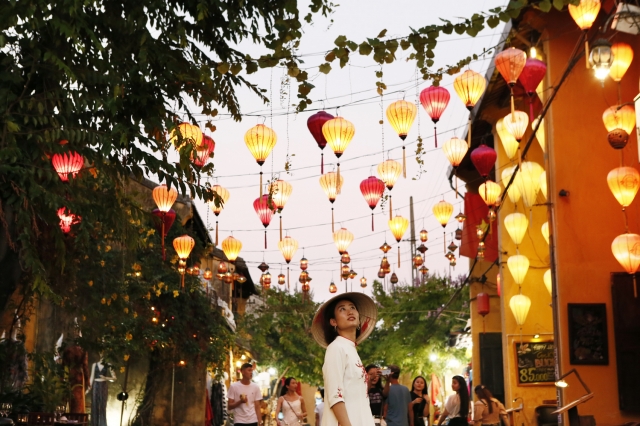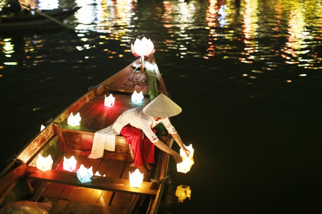 町はどこもかしこもランタンがきらめき、ノスタルジックな雰囲気は夢のような美しさ。町を流れるトゥボン川では小舟でクルーズを楽しみながら、灯籠流しをすることができます。町の明かりがきらめく水面に灯籠が浮かぶ瞬間は、とってもロマンティックです。