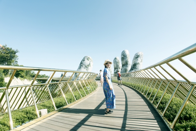 SNSで話題のダナンの人気スポットと言えば、テーマパーク「サンワールド・バー・ナー・ヒルズ」のゴールデン・ブリッジ。このテーマパーク、季節の花が美しいフラワー・ガーデンや中世フランスを再現したという石畳の町並みなど、随所に撮影スポットがあり、あっという間に半日が過ぎます。