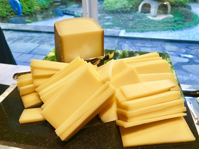 ワインとくれば、チーズも欠かせませんね。この地方の代表格といえば、フランスで最も生産量の多いコンテComté。ナッツのような風味をもつハードタイプで、フランスの家庭に欠かせないポピュラーなチーズです。コンテはスイス国境に近いジュラ山脈の一帯で作られ、熟成期間が長いほど旨味成分が強くなります。フランス人は8ヵ月熟成くらいの比較的フレッシュなものを好むそうですが、旨味文化の日本人はもっと長期間熟成させたものを好む人が多いのだとか。ほかにも、コンテから生まれたチーズ、モルビエMorbierや、冬季限定のとろっとろなモン・ドールMont d’Or(スプーンですくっていただきます!)もこの地域の名産です。ブルゴーニュのほうでは、マール酒で洗いながら熟成させたエポワスEpoissesや、ラミ・デュ・シャンベルタンL’Ami du Chambertinなど、香り強めで個性的なウォッシュタイプのチーズがよく知られています。
