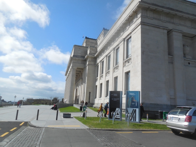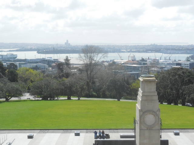 外縁が高く、内部が低くなっているようで公園の外側からは町を一望できます。平日だからか人はほとんど歩いていません。目指すは園内にあるオークランド戦争記念博物館です。入場券売り場でスタッフのオバちゃんととりとめのない話をしたのですが、この人もフレンドリー。