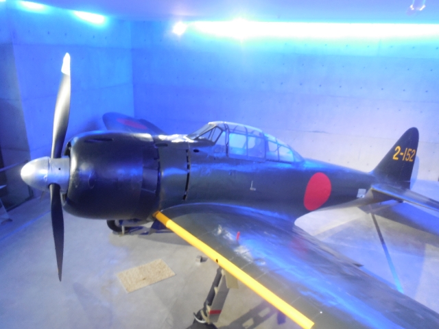 3階は戦争記念コーナーです。何と日本のゼロ戦が展示されています。この機体は一度も空中戦に挑むことなく終戦をむかえたようです。このゼロ戦の地上整備員は、若い操縦士の命を救うためにわざと修理を遅らせたのか、そのおかげできれいな状態を保っているようです。