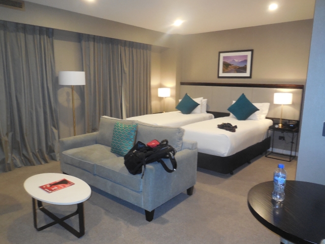 ラタム航空が用意してくれたバスが到着したのは20時を過ぎていました。バスに乗り込むと乗客の大半はスペイン語とポルトガル語で会話をしています。30分弱でホテルに到着しましたが、1泊いくらするんだ?というような高級ホテル。部屋は大きく、リビングやキッチンもあり、ツインベッド。こんな部屋にひとりではもったいないくらいで、さらに食事も付いていました。だが、朝5時に迎えのバスが来るのでかなり早めに就寝しました。