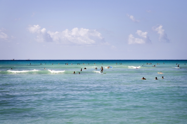 世界中のサーファーが憧れるハワイで、サーフィン・デビューできたら素敵だと思いませんか。波が穏やかなワイキキビーチは、初心者のサーフィンにもってこい。ビーチを歩いていると、その場で申し込めるレッスンやボードレンタルのデスクがいくつも見つかります。また、ホテル内に受付デスクを設けているところもあります。