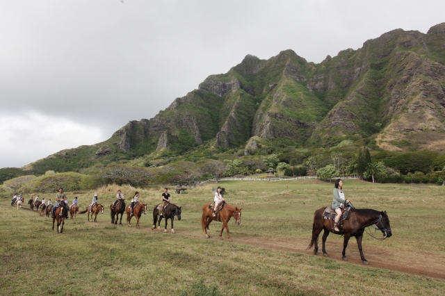 初めての乗馬体験には、映画『ジュラシックパーク』のロケ地として使われたことで知られている「クアロア・ランチ」がおすすめ。広大な敷地からはカネオヘ湾とユニークな帽子の形をした小島「チャイナマンズハット」が望め、ロケ地ツアー、ジップライン、四輪バギー、カヤックなど、お好みのアクティビティと組み合わせて楽しめます。