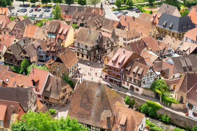 ルネッサンス時代の建物が並ぶワイン街道にある村です。木組みの家々が、美しい景観を形作っています。コルマールから鉄道TERで約10分とアクセスも良いです。アルザスのワイン街道にあり、村内にはワイナリーも点在しています。