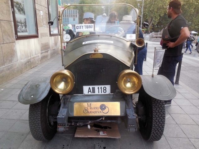 サラエボは面白い町で、狭いエリアにカトリック、ユダヤ教、イスラム教、東方正教会などの宗教施設が点在しています。そのような建造物が好きな人にはたまらないかもしれません。川に架かるラテン橋は、第一次世界大戦の勃発の原因の一つになったサラエボ事件の現場であり、その前にある建物はサラエボ博物館になっています。その入口には暗殺されたオーストリア皇太子夫妻が乗った車が展示されていて、観光客が写真を撮っています。