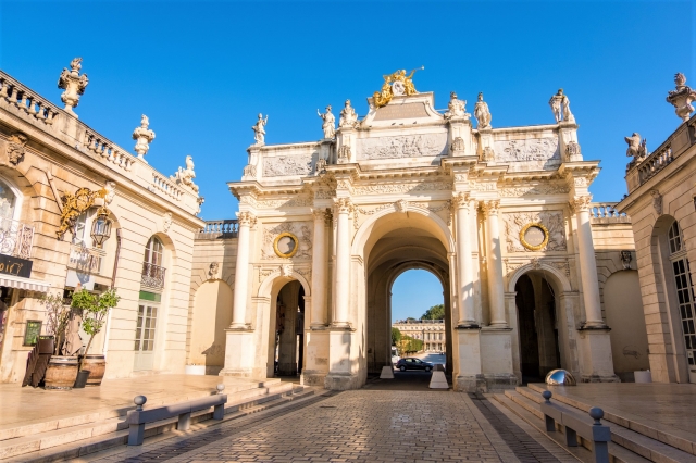 ナンシーの観光は、町の顔ともいえるスタニスラス広場からスタート! 広場の名前「スタニスラス」は、18世紀中頃にフランスに亡命し、ロレーヌ公としてこの地を治めた元ポーランド国王スタニスラス・レスチンスキーのこと。ルイ15世の義理の父にあたります。この広場は娘婿のフランス国王を称えて1755年に造られたもので、革命以前は国王広場と呼ばれていました。ナンシーは11世紀からロレーヌ公国の首都として栄えてきましたが、スタニスラス公の死後、公国はフランスに併合されました。