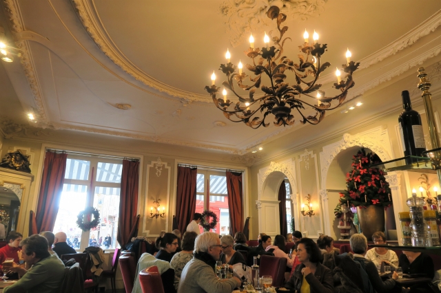ナンシーは大学都市でもあり町には若い人も多く、手軽に食事ができるお店もたくさんありますが、アールヌーヴォーの町に来たからには一度は訪ねたいのがこのお店。1911年創業の老舗ブラッスリー「エクセルシオール」です。照明はドーム、家具はルイ・マジョレルと、多くのナンシー派の芸術家たちが内装を手掛けていて、アールヌーヴォーにどっぷり浸りながら優雅に食事がいただけます。1976年には歴史的建造物に指定されました。