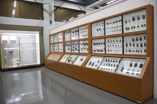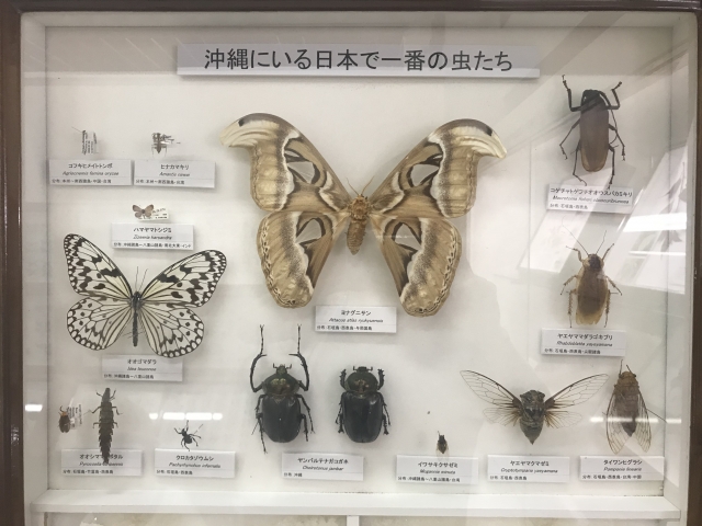 琉球大学の農学部と工学部に挟まれたエリアに、レンガ造りの博物館があります。これが「風樹館」です。入館無料で、誰でも見学することができます。こぢんまりとした建物ながら、入り口付近には生体の「セマルハコガメ」など天然記念物の展示が。中に入るとイリオモテヤマネコ、ヤンバルクイナ、コウモリなどの希少な生物の剥製や沖縄ならではの昆虫の標本、鉱物や化石、伝統工芸や古民具まで、圧巻の展示数です。また、今となってはとても貴重な、首里城関連の考古資料もあります。好奇心旺盛なお子さんなら、きっとハマって長時間ディープに楽しめるはずです。