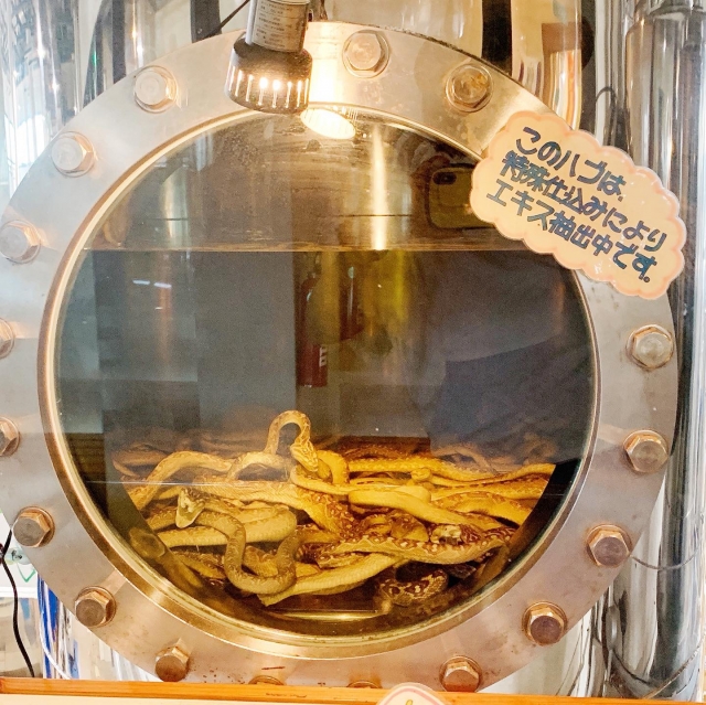 ●ハブ酒が仕込まれている様子が観察できる「南都酒造所」