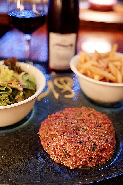 みじん切りにした牛肉に玉ねぎやケッパー、ハーブなどを混ぜ、オリーブオイルや塩胡椒で味つけた「タルタルステーキ」は、生肉好きにはたまらないフランスの名物料理。シンプルな調理法だけに、素材の味と鮮度が命です。