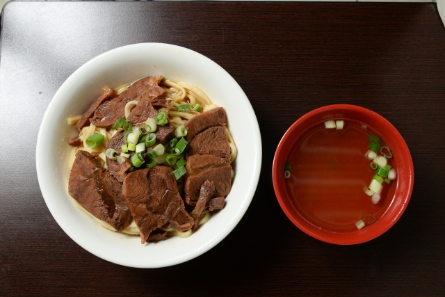 1953年創業の牛肉麺店。ここでぜひ食べておきたいのは、牛肉拌麵(ニウロウバンミエン)。汁なしの牛肉麺で、モチモチの自家製麺の上に、オーストラリア産の牛肉とネギがのります。麺にたれが染み込んでいるのでそのままでも十分おいしいけれど、テーブルに置かれたニンニクやトウガラシをかけるとさらに旨味が増すのでおすすめ。セットの牛肉スープも絶品です。混雑時は時間がかかる場合があるので、セルフサービスの滷味を先にいただくのもあり。