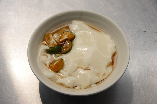 高雄でスイーツといえば、高雄発祥の金桔豆花がおすすめです。鹽埕吳家金桔豆花は1925年に創業し、リアカー販売からスタートした豆花専門店。金柑は季節によって産地を変えていますが、主に屏東産で有機栽培されたものを使い、毎朝手作業で一つひとつ選別しています。豆花に使う大豆は遺伝子組み換えでないもの。小豆がトッピングされた紅豆豆花も素朴で美味!