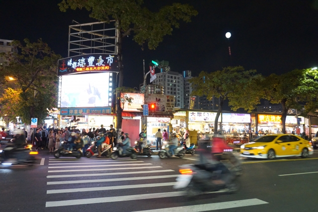 約1000坪の広い敷地内に、1000軒以上の屋台が並んでいます。滷味や臭豆腐(チョウドウフウ)などのB級グルメの定番をはじめ、エスニックやケーキ専門店などバラエティ豊富。台湾南部特有の餅を揚げて砂糖をまぶした白糖粿(バイタングイ)屋台もあります。グルメ屋台以外にも衣類や携帯アクセサリーなどのショッピングエリア、ダーツやパチンコゲームなどのゲーム屋台があります。海鮮を満喫したい場合は六合觀光夜市(リウフーグアングアンイエシー)へ。