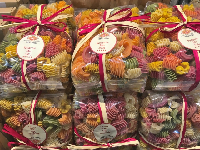 有名なメーカーの商品でなくても、お土産用に美しくラッピングされたものもあります。かわいらしいパッケージのパスタは、町角の土産物店やカンポ・デ・フィオーリ広場の青空市場、イータリー、カストローニなどの食材店などで売られています。