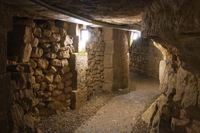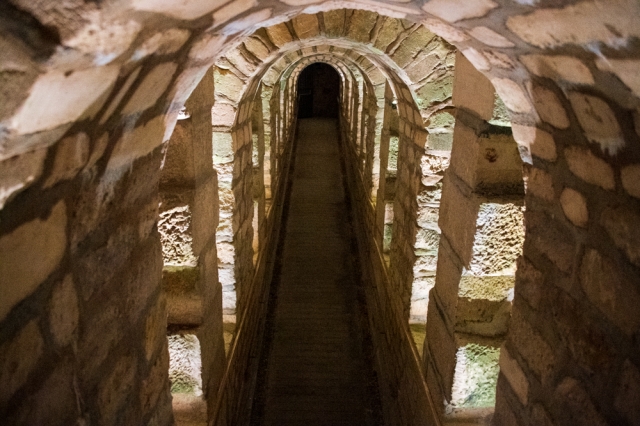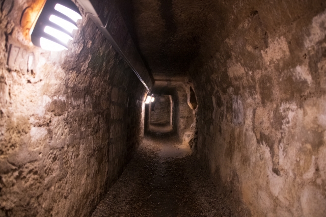 さらに奥に進むと、天井の高い巨大なアーチ構造の空間を見学できます。採石場は地層と採掘できる石の種類によって2層構造になっており、見学コースのさらに下の地層にも坑道が広がっています。それらふたつの空間をつなぐための場所がこの巨大な空間です。これらを過ぎると、いよいよ納骨堂です。