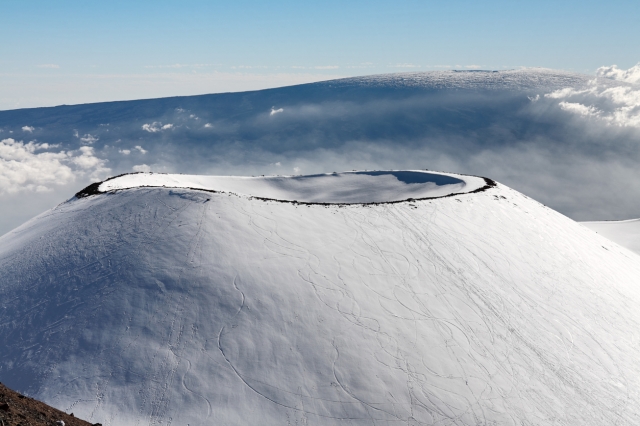 ハワイ語で「白い山」という意味をもつマウナケア山。島全体がスピリチュアル・スポットと言われるこの島は、古代ハワイアンの時代から最も神聖な場所とされている山でもあります。その名のとおり、例年1~2月には山頂付近が雪に覆われることが珍しくなく、天気がいい日にはその姿をハワイ島内のあちこちから見ることができます。