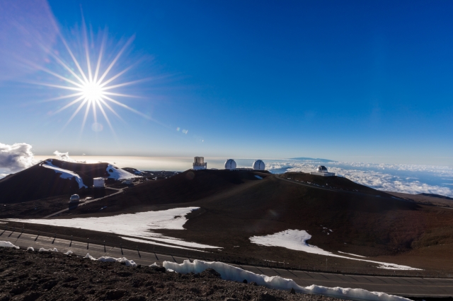 マウナケア山頂は、世界有数の天体観測地。アメリカのスミソニアン天文台を筆頭に、日本の国立天文台が建設した「すばる」、ハワイ大学、イギリス・カナダ・ブラジル・オーストラリアなど7ヵ国が共同で設置した望遠鏡など、11ヵ国の13天文台が設置されています。