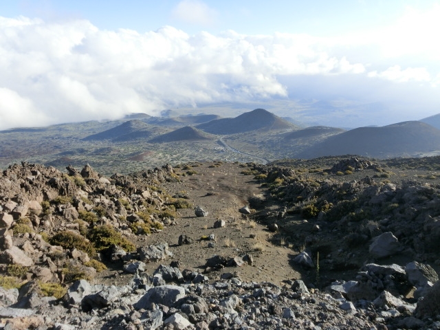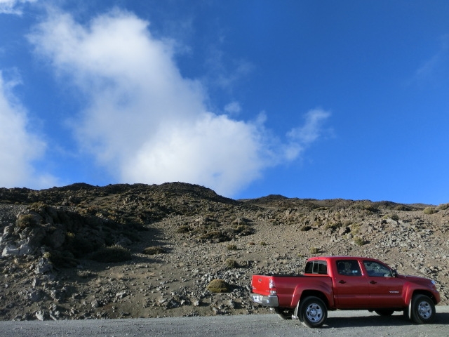 「オニヅカ・ビジター・センター」から山頂へは約8マイル(13km)、車で約30分です。標高差約1500mを一気に登ることになり、急勾配の坂道には舗装が途切れる部分や急カーブが続きます。ブレーキのトラブルやオーバーヒートを避けるためにローギアでゆっくり運転することを心がけましょう。ここから先は、売店もガソリンスタンドもありません。燃料は十分か、念のためもう一度チェックしてから出発しましょう。