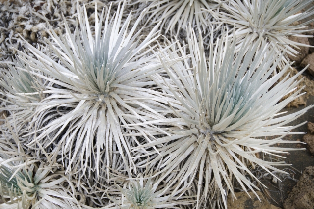 施設周辺で観られる珍しい植物が「ギンケンソウ(銀剣草、Silver Swords:シルバーソード )」です。標高2100~3700mの日差しが強く乾燥した土地に育つこの植物は、名前のとおり剣のような形をしていて銀色に輝いて見えます。ハワイではここマウナケア山とマウイ島のハレアカラ周辺でしか見ることができない貴重な植物。40年の寿命があり、花が咲くのは数十年に一度といわれているので、もし開花のタイミングに出合えたらとてもラッキーです。
