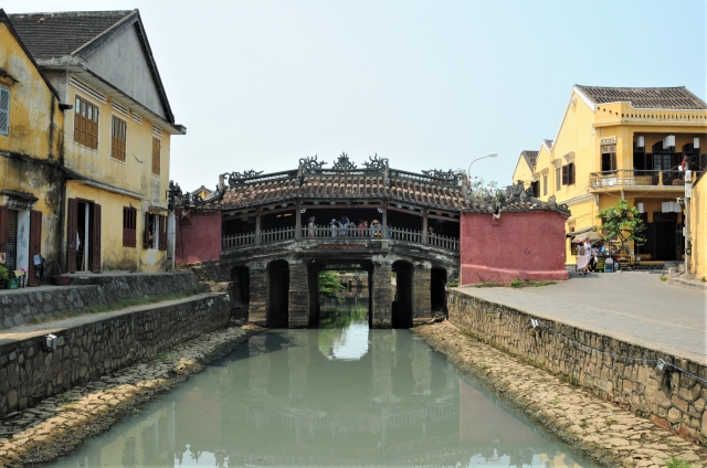 ホイアンの町歩きは2万ドン紙幣に印刷されている来遠橋を起点とするのがよいでしょう。来遠橋は、日本人町と中国人町を結ぶ木造の太鼓橋。この橋はかつて、この地に住んでいた日本人が架けた橋とされ、別名“日本橋”とも呼ばれています。