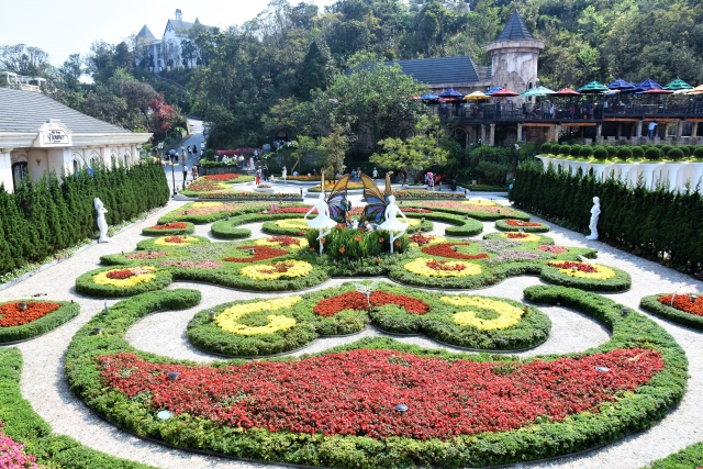 パーク内は季節ごとの花が咲くフラワーガーデンや、コロニアル建築がフランス統治時代を彷彿とさせるフレンチヴィレッジなど、雰囲気の異なる4つのエリアで構成されています。最大の目玉は“神の手”と呼ばれる長さ150mのゴールデンブリッジ。巨大なふたつの手に支えられた橋は、写真映えするとSNSで話題沸騰。ふたつの手はグラスファイバー製ですが、ところどころに緑の苔を表現するなどリアルな岩のよう。日中は大混雑なので映え写真を撮りたい方は早朝がおすすめです。