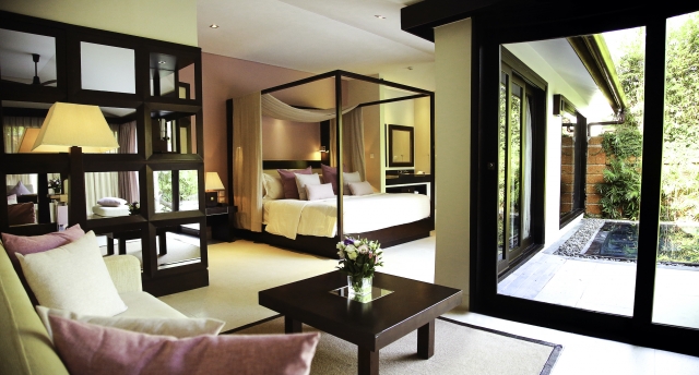 売れっ子デザイナーのビル・ベンスリー氏が手がけた伝統とモダンを融合させたリゾートデザインも見どころのひとつ。山肌に並ぶ客室から約700mのビーチ、そしてエメラルドグリーンの海へと続くランドスケープは芸術的でもあります。