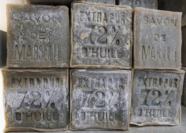 天然素材だけを使い製造されるマルセイユ石鹸(サヴォン・ド・マルセイユ)も特産品のひとつです。伝統的製法のマルセイユ石鹸は、植物油と水酸化ナトリウム(オリーブやココナッツ、アブラヤシから抽出)と水のみを用いて作られます。マルセイユとその周辺には現在4社が営業を続けており、工場見学や直売所などを併設している会社もあります。