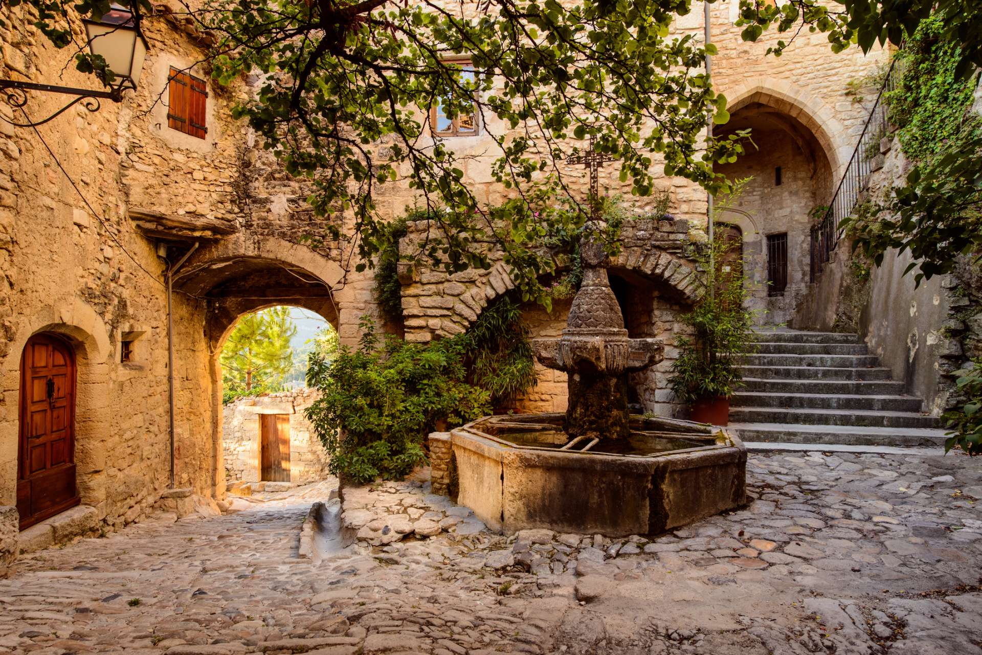 リュベロン地方の村フォンテーヌ・ヴォークリューズには、年間平均6.3億立方メートルというヨーロッパ1位の湧出量を誇る泉があります。村内には14世紀のカヴァイヨン司教の城跡、ロマネスク様式の教会などが残っています。20世紀半ばまでは村の主要な産業として製紙業が行われており、製紙水車も見学できます。