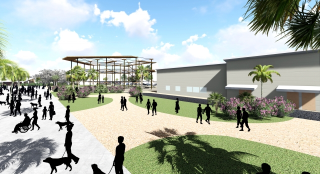 コミュニティエリアはBBQ場やテラス席の飲食店が並ぶ開放的な空間で、ビーチを眺めながらくつろぐことができるエリアです。