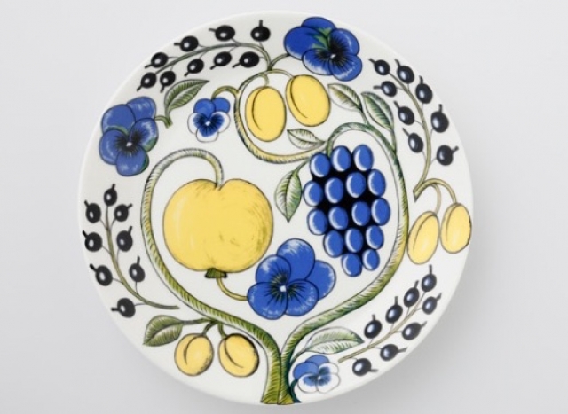 フィンランド語で「楽園」を意味するシリーズ。ブドウやリンゴなどが描かれたパターンは、食卓を華やかに彩ってくれます。