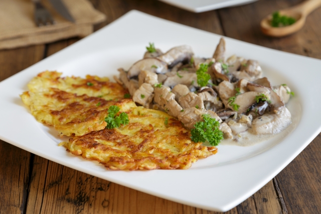 野菜やベーコンなどを加えて焼き、そのまま食べることもありますが、牛肉のクリーム煮込みゲシュネッツェルテスや、ソーセージなどのつけ合わせとして出てくることが多いです。