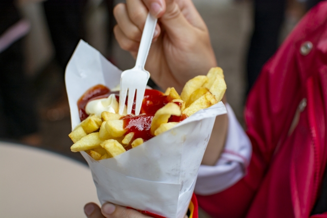 スタンダードなプティンのほかにも、ベーコンやソーセージのトッピングや、チリソースなど、店によりバリエーションがあります。