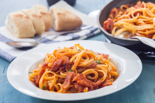 日本でもおなじみのカルボナーラは、実はローマが発祥。本場では生クリームを使わず、卵と羊乳のチーズ、ペコリーノ・ロマーノで作ります。仕上げに黒こしょうをまぶすのが肝だとか。また、グアンチャーレ(豚頬肉の塩漬け)とトマトソースのアマトリチャーナもローマの名物。スパゲティのほかリガトーニなどのショートパスタで食べるのが定番です。