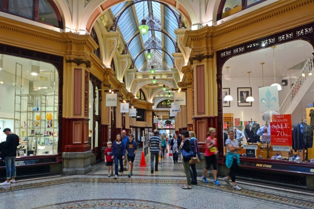 英国風とメルボルンが形容されるのがよくわかる、ビクトリア時代の遺産ともいえるのがクラシックなアーケード。タイムスリップ感が味わえます。