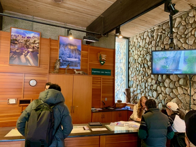 また、風が吹くと体感気温が下がり事故に繋がることもあるので風の強さ、日没時間も気にしておくといいでしょう。ビジターセンターでそのほかの諸注意も確認して、さらに「紙の地図」は必ずもらいましょう。何度訪れていても現地の最新情報は、常にアップデートしてください。なお、センター内にはブックショップや小さいギフトショップ、展示室もあり、ヨセミテバレーがどのようにできたのかも紹介しています。