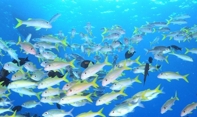 ラウラウビーチでは、何万匹ものアジの群れがトルネードのように遊泳するさまや、ゆったりと泳ぐウミガメの様子も。