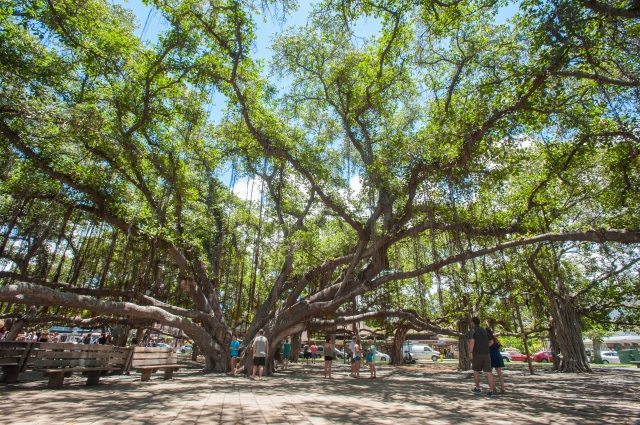 ラハイナのメイン通りであるフロント・ストリート沿い、ラハイナ港の目の前には、ラハイナ・バニヤン・コートと呼ばれる公園があり、樹齢140年を超える大きなバニヤンツリーが見られます。