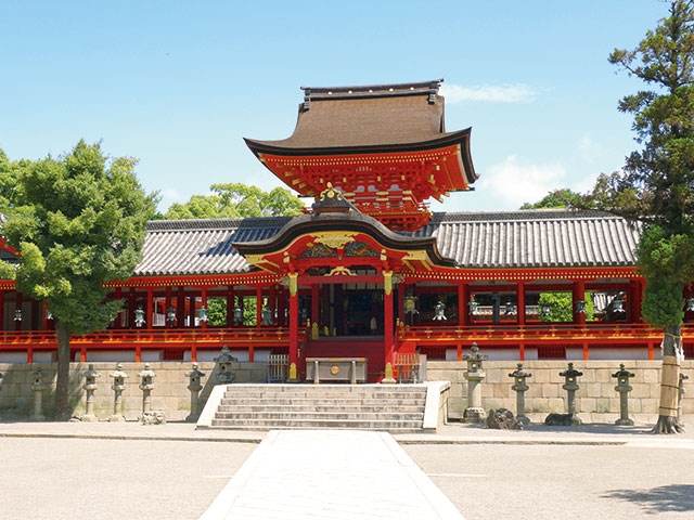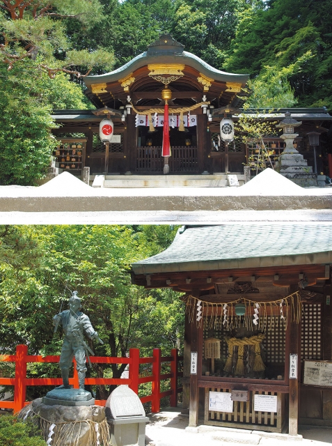 こちらの神社には、夫婦神である素戔嗚尊(すさのおのみこと)と稲田姫命(いなだひめのみこと)、そしてその御子神である八王子命(はちおおじのみこと)、という仲のよい御祭神ファミリーが祀られています。この3柱にあやかろうと、恋愛成就や良縁を願って参拝に訪れる人があとを絶ちません。また、この境内地でかつて剣豪宮本武蔵が京都の名門兵法家吉岡一門との決闘を行ったことから、境内には立派なブロンズの武蔵像が立っています。決闘に勝利した武蔵のように、恋のライバル、あるいは臆病な自分に打ち勝ちたい!そんな願いにもこたえてくれそうです。