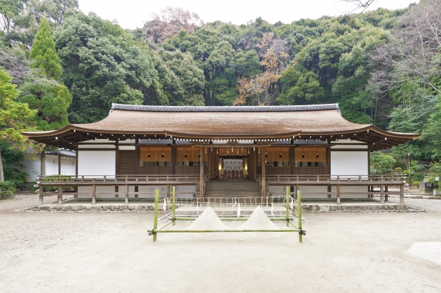 宇治上神社も、八大神社と同じく親子3神をお祀りする神社です。主祭神の菟道稚郎子(うじのわきいらつこ)は頭脳明晰な人格者で、周囲から大きな期待を寄せられていた人物。その御神徳を得ようと、学業成就、試験合格、ビジネスの成功などを願ってあらゆる年代の人々が参拝に訪れます。境内には、国宝となっている本殿や拝殿をはじめ、清めの砂山、宇治七名水に数えられる湧き水「桐原水」、置いた小石が落ちなければ願いがかなうと言われる巨石「岩神さん」など、たくさんのパワースポットがあります。