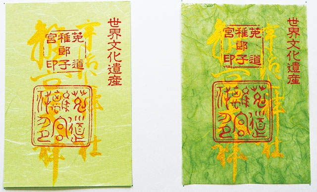 和紙の御朱印紙に花と動物を色鮮やかな刺繍で縫い込んだという珍しい趣向。「勅祭石清水祭」で奉納する12台の「御花神饌」をモチーフにした御朱印です。季節ごとの花を八幡三所へ供える神事にならい、御朱印紙も四季ごとの期間限定で3種類ずつ登場します。全12種類(各1000円)、写真は桜と蝶をモチーフにしたもの。